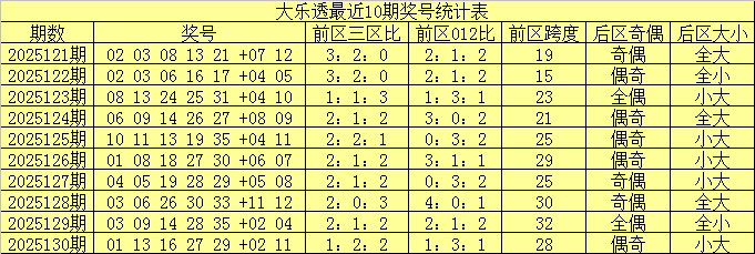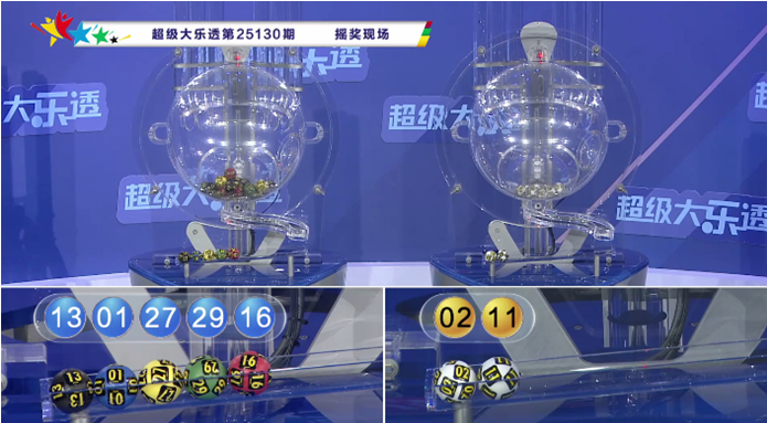 大乐透第2025130期奖号开出:01 13 16 27 29 +02 11。其中前区三区比为1:2:2,012路比为1:3:1,后区开出一大一小、一奇一偶奖号。