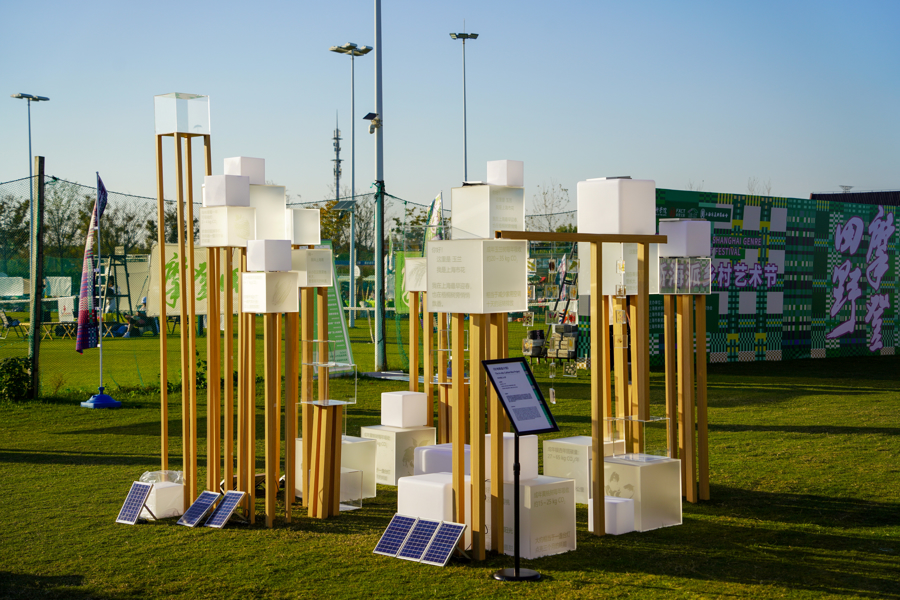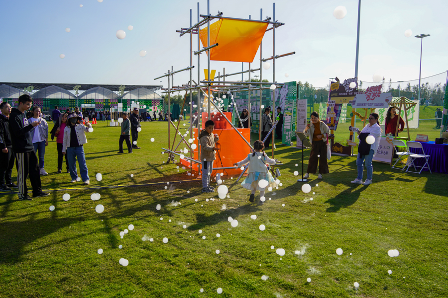 澳大利亚皇家墨尔本理工大学的《芦影・共生》则更具互动性,该作品以奉贤珍稀鸟类震旦鸦雀及其赖以生存的芦苇湿地为灵感,通过竹筏与芦苇构建漂浮生态装置,呼吁公众关注湿地保护。游客可划着皮划艇为鸟类补给食物,带走印着湿地保护知识的生态纸袋上。“玩的时候还能学东西,孩子很喜欢。”来自市区的游客李女士说。